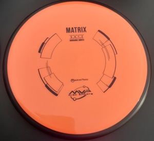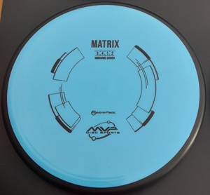 situations, and its stability is best described as a longer Axiom Envy. Matrix should have a long straight travel for most throwers, followed by a dependable fade. While this is not a “meathook” style overstable midrange, its utility is not to be underestimated. Release angles make all the difference with this type of midrange, yielding useful flights on releases from anhyzer to flat and hyzer. |